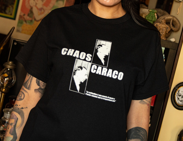 Black cotton Gildan t-shirt. Available in S, M, L and XL sizes